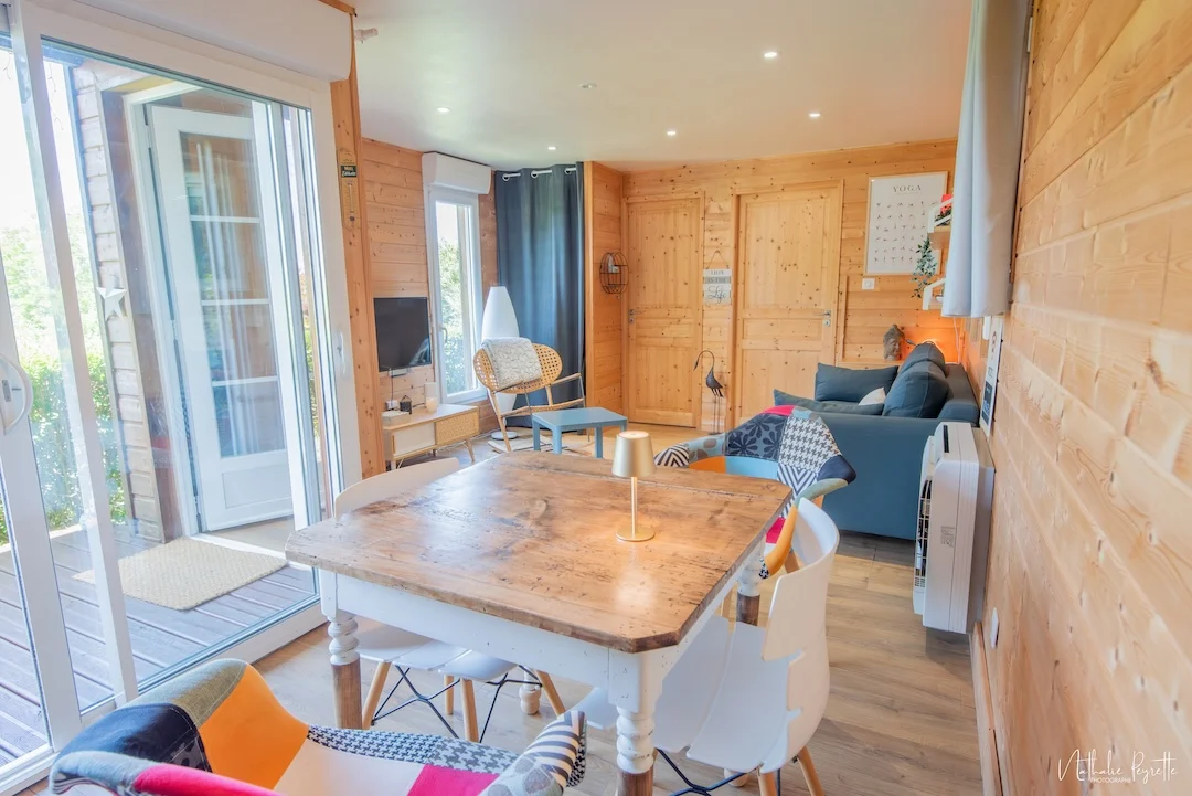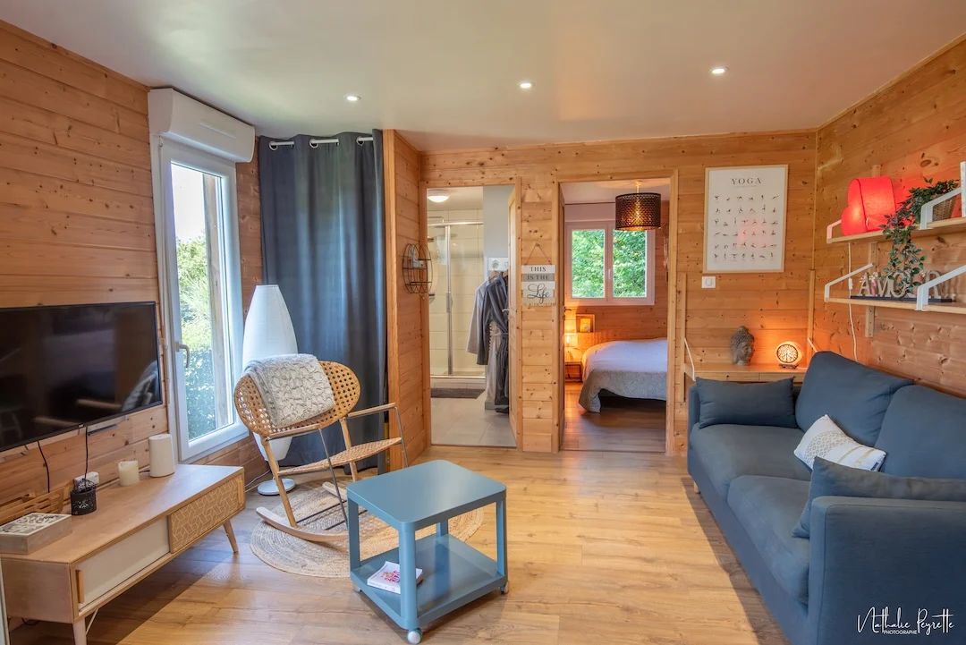 Con la comodidad de un lodge amplio y luminoso, enclavado en plena naturaleza frente a los Pirineos. Ideal para una escapada de bienestar que recarga cuerpo y mente.